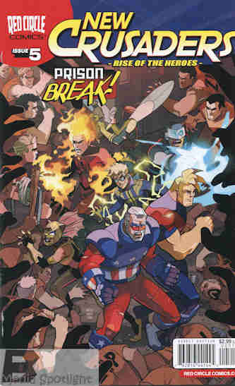 “Trial By Fire” part 1 “Jailbreak” WRITER: Ian Flynn PENCILER: Althia Martinez INKER: Gary Martin COLORIST: Matt Herms LETTERER: John Workman ASSISTANT EDITOR: Vincent Lovallo EDITOR: Paul Kaminski “Legacy of the Crusaders”: “The Black Hood” WRITER/ARTIST: Bray Morrow FLAT COLOR: Barry Grossman RENDERING: Thomas Mason EDITOR: Robin SnyderThe new Crusaders face their first mission when the Brain Emperor breaks some of the original’s old foes out of prison. Our heroes may end up overwhelmed by sheer numbers (and Fly-Girl overwhelmed by a confession from Fireball) In the back-up story we have the origin of the new Black Hood, when a detective decides the system is too flawed and learns about his family’s heritage.