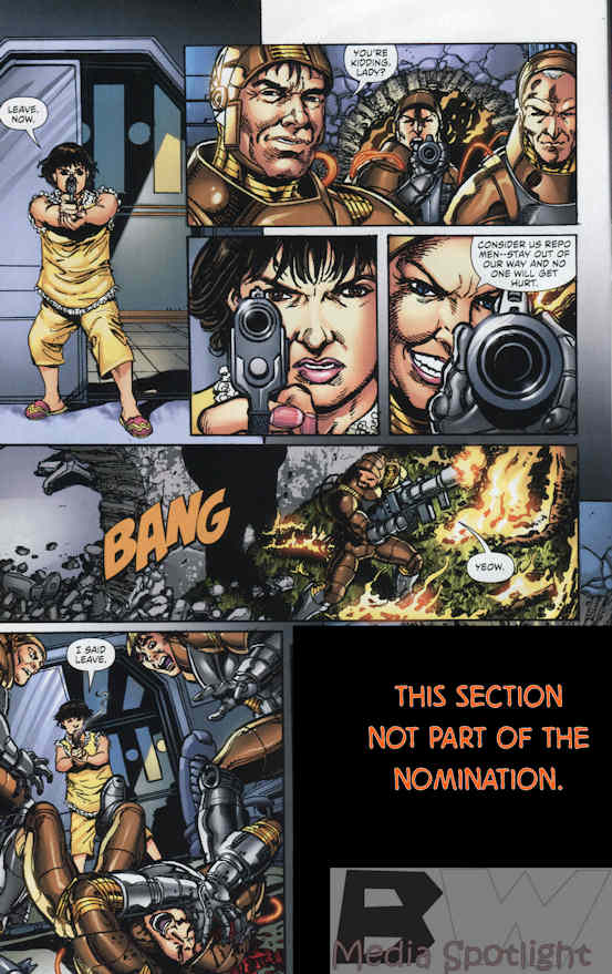 Raiders, claiming to be “repo men”, attack Starr Island, with only Huntress and Karen’s assistant to guard it. In a flashback we see how Huntress obtained her outfit in his world and later how she disrupts a sex slave operation.