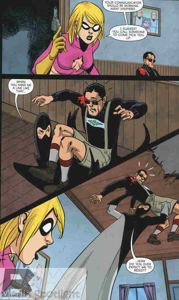 What they got wrong: It’s rare when I call out a cover, but with not much else bad to say about the comic there it is. The series has already annoyed me by having covers that have no connection to the story inside, one of my pet peeves when it comes to covers. They would make for great pin-up art and I can point to a couple of covers that I would like as pin-ups for my little studio were I able to hang anything in this room. But this one is just not up to their usual standards. It Girl looks anorexic and Slug’s human form doesn’t look a lot better. It’s just an ugly cover and they’ve done better in previous issues. Still, I would like for them to try to sell the story inside for a change. Slug, Mr. Gum, and…um…the other guy there aren’t even in this story. Somebody may try to tell me this was an homage to something but it won’t change my opinion of the cover.