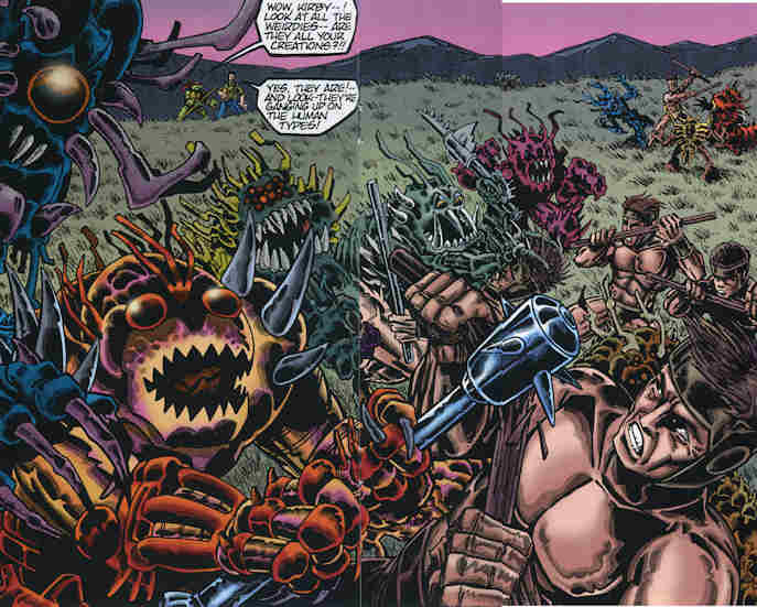 They’re all monsters Kirby drew, which came to life thanks to a strange crystal he has tied to his pencil. Because comics.