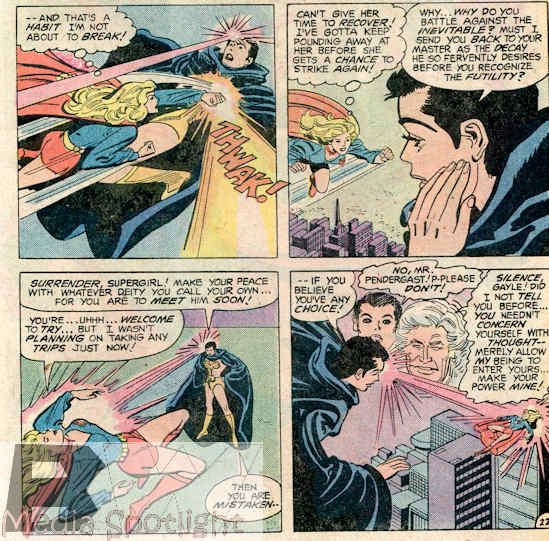 At this point, Gayle starts realizing that Supergirl may have a point, but so does Pendergast, the voice in her head. The resulting conflict causes a psychic burst that lets her get away. Still, I think the Girl Of Steel gets this one.
