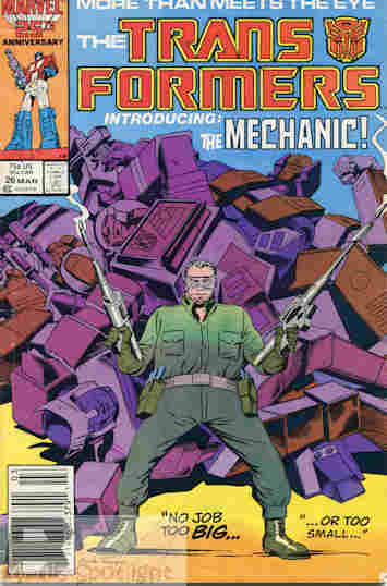 Other notes: I fit #26 here in continuity, while the last two issues of G.I. Joe & The Transformers go together. That’s why there are two Transformers issues in a row, while Saturday & Sunday will see the last two issues of the crossover. As for the Mechanic he will make one more appearance in a few issues and never be heard from again (unless he pops up in the UK comics or something.)