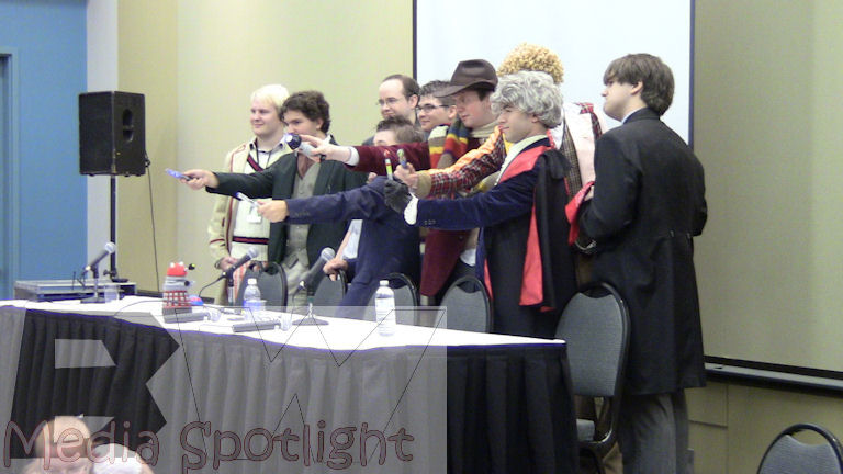 This last image came from Uncle Yo’s “Doctor Who + A” (as in Q&A) panel, which you’ll see in a future “BW Panelling” installment. The first Doctor didn’t make it until near the end of the show, and the the Sixth and Eleventh Doctors needed stand-ins.