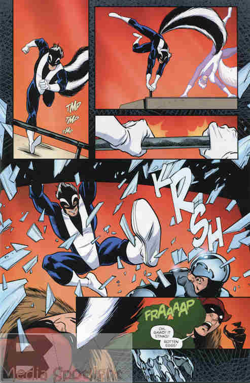 In four mini adventures the Atomics deal with Ferret’s men (and may get a team member), capture Night Runner with the help of the KImmanDoes, and battle a guy who can bring mummies to life (one of which may be having his or her own adventure in the future).