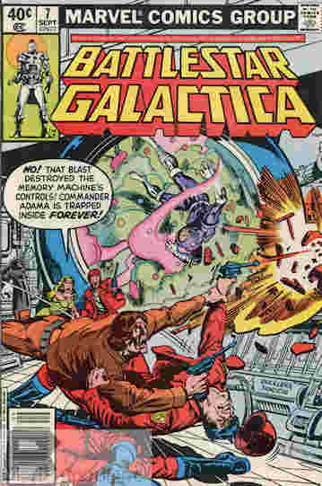 I looked up the previous issue. Adama want to equip the other ships with lightspeed travel so they can continue on. In that issue and in this one they are still making their way through the void and last issue Serna had a funeral and we saw both Starbuck and Apollo deal with her death while Boxey tried to remain strong. The important thing to this story is that Adama decided to use a “memory machine” to try and recall the hieroglyphs and Uri used the opportunity to seize power. If I ever get my hands on #6 I will do a proper review.
