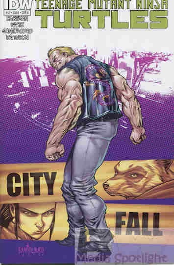 “City Fall” part 5 STORY: Kevin Eastman, Bobby Curnow, & Tom Waltz WRITER: Tom Waltz ARTIST: Mateus Santolouco (including selected cover) COLORIST: Ronda Pattison LETTERER: Shawn Lee EDITOR: Bobby Curnow