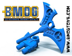 Online can be a different story, as some fans have gone to making third-party toys of figures they don’t think will come out officially or will not be as good as they feel their favorite character deserves. (Although they have to put a new name on there and make the figure just different enough for legal purposes, like when characters in licensed comics don’t quite resemble the actor fully.) Yet others make accessories or labels that interact with their favorite toyline. Greg and Trent’s figures, though, go beyond that…by being compatible with a whole bunch of toylines! Let me introduce you to the Bio-Mechanical Ordnance Gestalts!