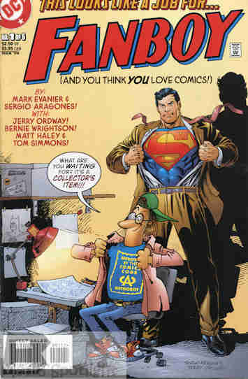 I like the idea that Finster’s fantasy sequences are done in traditional comic style instead of Sergio’s usual style. And while it’s obviously Sergio’s style (although the Superman on the cover of a comic in the non-fantasy world isn’t a parody like in Destroys DC) it’s the writing that makes it different. While the same humor Evanier brought to the comics we reviewed last week are here (minus the political swipes and only one pop-culture reference) there’s already a different approach because it’s not just about the comedy. As this series goes on Finster’s fantasies will help him come up with solutions to some big problems and learn a bit about himself, as well. Then there’s the prose back-up, as Finster shares how he got into comics, what it’s like meeting fellow fans, and a lot about his late uncle, who apparently was a big influence on his life.