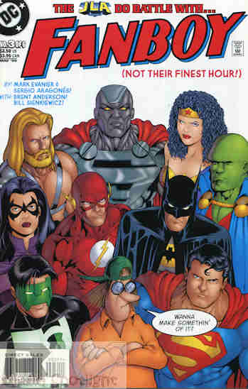 What they got right: This one is all on the art, mostly the fight between “The Incredible Finster!” and the Justice League. The regular art is also good, and I spotted the cameos by Sergio and Mark.