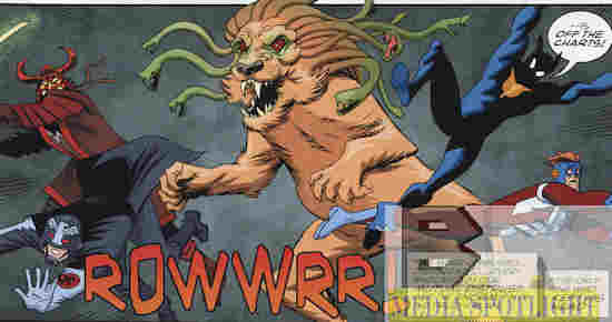 Issues #s 3 & 4 sold out before I could get to them. I got lucky with this issue since it was the last one on the shelf. Apparently the Druid was defeated last issue, only “shards” of himself were sent across time and space, one of them ending up during the events the Shield was discussing in the back-up stories. Now the Fox must unite the Shield and his enemy counterparts, Master Race (Germany) and Hachiman (Japan), or else the only winner of the second World War will be the Druid!