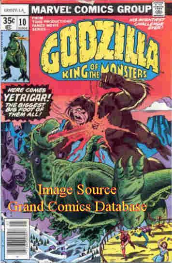 “Godzilla Versus Yetrigar” WRITER: Doug Moench PENCILER: Herb Trimpe INKER: Fred Kida COLORIST: Mary Titus (good news, next week I’ll actually have an issue in color!) LETTERER: John Costanza EDITOR: Archie GoodwinGodzilla’s travel takes him near a place where bomb testing used to happen until one killed the workers and mutated a Sasquatch that happened to be trapped there at the time and has already further damaged the Behemoth. As their battle wages, Jimmy apologizes for kissing Tamara, and Rob sneaks away from them and toward Red Ronin. Back in control of the robot, he rockets to where Godzilla and the monster Rob names “Yetrigar” have chosen as a battleground…the Grand Canyon!