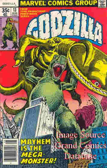 “The Mega Monsters From Beyond” part 2: “Triax” WRITER: Doug Moench PENCILER: Herb Trimpe INKER: Fred Kida (back to the black & white “Essentials” for this issue) COLORIST: Don Warfield LETTERER: John Costanza EDITOR: Jim ShooterTriax and Godzilla arrive in front of Red Ronin. Godzilla and Rob are able to take the fight to Triax, who tries to move the fight to Salt Lake City. Then the Megans send in the other Mega-Monsters, Riahn and Krollar down to battle while the Betans try, and fail, to stop the Megans from using a power booster that will eventually kill the beasts. Before the boost Riahn is able to take down Red Ronin, leaving Godzilla alone with three Super Mega-Monsters!