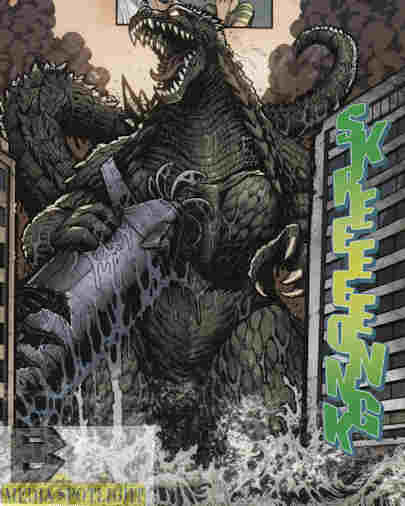 Unaware of the MechaGodzilla attack on Anguirus, the team learns where he is and employs a Mecha G to retrieve him. The mysterious salesman (whose identity is revealed at the end of the issue) continues to not only sell his mass-market MechaGodzillas but when Godzilla arrives on land, right near Woods and Allie) he sends an army after Godzilla.