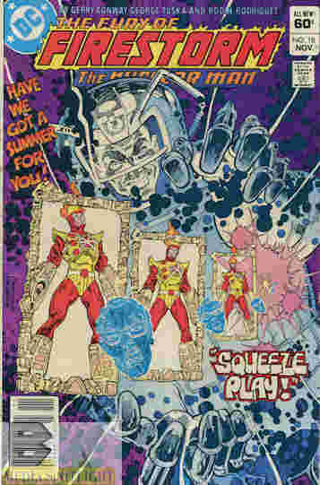 Someone tries to either kidnap or kill Ronnie and Doreen, only catching the name “shine”. Doreen’s dad connects the name to a non-syndicate mob family. While this and Cliff making peace with Ronnie is going on, and Harry is “torturing” Martin with his health nut routine, Hewitt undergoes the process that created Firestorm, Multiplex, and now Lorraine/Firehawk, becoming Tokamak, who can create magnetic fields, which he uses to kill the former Enforcer, giving his spare armor to his assistant. Then he goes after Lorraine, sending Firestorm into action to stop him. Except Tokamak uses his magnetic rings to do what he did to Merkyn and compress Firestorm into non-existence…except the Professor’s mental projection is still there. [continued in the first annual]