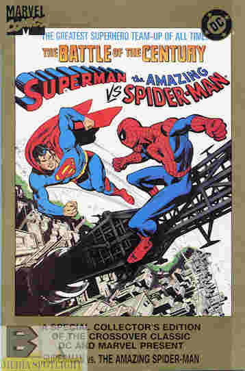The first crossover between the two companies was Superman Vs The Amazing Spider-Man, which we’ll look at next week in the Saturday spot. Many more would follow, including a second team-up for the Man Of Steel and the Friendly Neighborhood superhero. We’ve already looked at Spider-Man’s first team-up with Batman in an earlier Scanning My Collection article. While both companies have done team-ups with Image or Archie, it’s the DC and Marvel crossovers we most remember because they are the two biggest superhero comic companies, hosting characters that have been in many other mediums from novels, movies, cartoons, live-action TV, newspapers (Spider-Man still has a comic strip), and audio dramas. (Actually, I don’t know if there was a radio series based on Marvel characters.) Combining the two universe’s big superteams is not something they waited until 2003/2004 to produce.