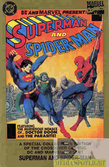 A string of worse luck than usual is getting Peter down. Having stopped a robbery he’s still being treated like one of the bad guys and now JJ is only interested in footage of Superman. Peter heads to Metropolis just as the Hulk is led to the spot where Parasite is being held away from people. His attack allows the villain to escape but a fight with Superman (which includes Supes destroying the buzzing drone that egged the monster on) costs him the intended “meal”. All of this is arranged by Doctor Doom, who has plans for the Parasite, which involve recapturing the Hulk and later seizing Wonder Woman. Meanwhile, Superman, suspecting Doom is up to something, temporarily relocates to the Daily Bugle in New York as Clark Kent while Peter’s pictures make him more money at the Daily Planet so he hangs around there awhile. However, Pete strikes out with Lana (and Steve pulls a mean joke about it, but Peter gets him back with the old webbed chair trick) and Spider-Man is still treated like a bad guy by Metropolis PD, making him feel even worse. Soon both heroes are led to Doom’s operation but are defeated by the two heroes. However, Parasite leached off some of Spidey’s powers, including his “spider-sense”, allowing him to learn that Doom actually had nasty plans for him (helping him absorb permanently the powers of Superman, Wonder Woman, and the Hulk will turn the Parasite into a key ingredient to his new energy source while Doom wipes out all other sources) and disrupts Doom’s operation, while Superman and Spider-Man shut down the reactor. Peter gets homesick and returns to the Bugle while Clark is able to rejoin the Planet and GBS by claiming he was working undercover for Superman.