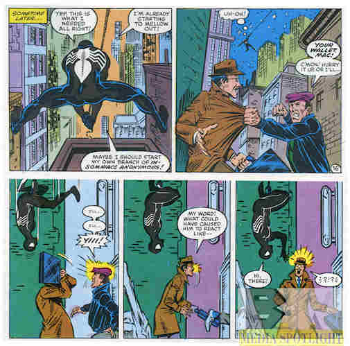 I said earlier this week that I prefer the black Spider-Costume…or at least the one that isn’t a brain-eating symbiote. It looks cool and give him a more spider look than his classic suit. That’s not why I chose it for this week’s entry, however. I’d wager that everybody else is going to do something Halloween related so I don’t know what I would compete with. I’m not a horror person. So I’m going with a fight that doesn’t have a lot of punching. He didn’t have to. The black suit as one other undocumented feature.