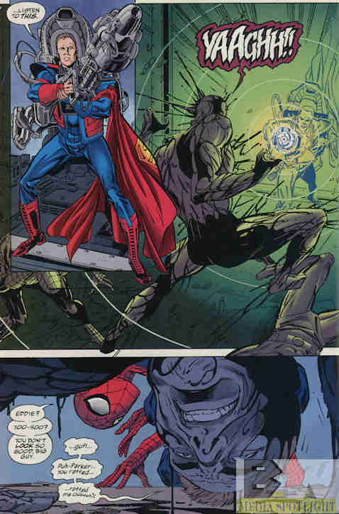 Access blasts Venom with a sonic cannon. (from DC/Marvel: All Access #1)