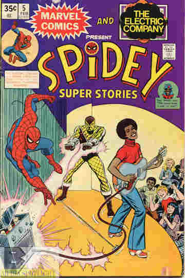 The Shocker shows up in the final tale, “The Shocker!”. The villain is out to steal the prize cup at a music contest Peter is attending with Mary Jane and Kathy of The Electric Company is taking part in. And with lyrics like “My name is Kathy, Kathy is my name” the only reason she wins is by helping Spider-Man stop Shocker (and saving Spidey from a fall) by connecting one of Shocker’s gloves that Spidey managed to get off of him with her electric guitar, which boosted the power because kids comic. It’s not that great a story and while it makes Kathy look cool it doesn’t do Spidey any favors.