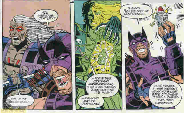 And finally Hawkeye lets the arrow fly right into Ultimo’s chest cavity, which is sealed back shut.