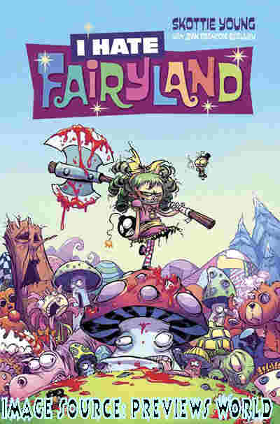 Skottie Young is known for doing lighter adaptations of fairy tales like the Oz series that kids can read. Well, keep the kiddies away from his next project, I Hate Fairyland, about a girl trapped way too long in a fairy tale world. Previews has a video interview with Young as well as a downloadable preview of the comic.