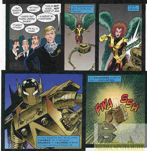 Bot-I wanted to investigate these pretenders to the name of the superheroes partially responsible for giving him (for lack of a better term) life. But he goofed up and the new I-Bots are after him. First up, the gravity-altering Heavyweight and the portal-creating Send.