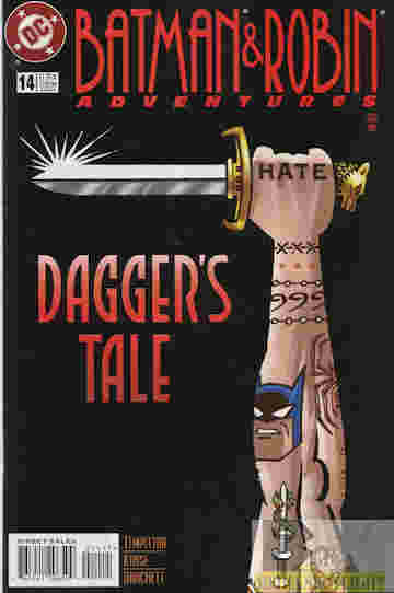 A new transfer to Stonegate Prison hears the tale of “Dagger” Dixon, a mob enforcer who once got a beating from Batman. Thinking only of revenge he manages to escape a prison transport truck with another criminal, who shoots without thinking and gets them both the attention of Batman. When Dixon tries to get the gun away before they’re both mowed down by cops, Batman has to save him. However, Dixon still has revenge in mind and tries to get Batman with his own Batarang. One beatdown later and Dixon ends up with a Batman tattoo…to remind him not to cross the Dark Knight again and how stupid he was trying to kill the man who saved his life.