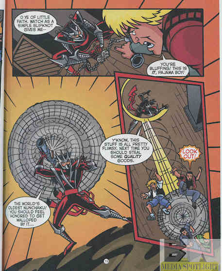 Ninjak turns a suit of armor into a ninja weapon. (from Acclaim Adventure Zone: The Boss)