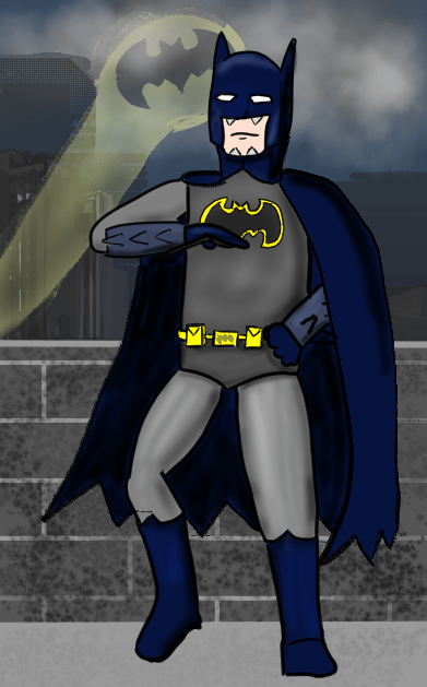 New to the costume is the center “vest”. It had the required bulletproofing plus the padding to absorb a blow. It’s form-fitting so the arms have full range for fighting or catching himself. The cowl, cape, and boots are not pure black but a sort of “midnight blue” to better hide against the night. The chest is black with the gold-outlined Bat-symbol, something the comics have added that I really like. The arms are grey and thin to allow for ventilation. There’s is also ventilation in the ears of the cowl so Batman’s head doesn’t get too warm. I also like one of the more recent designs for the Bat Symbol on his chest, a black bat with a yellow or gold outline. It’s better than the big oval “shoot me here” design but more interesting than the black bat alone.