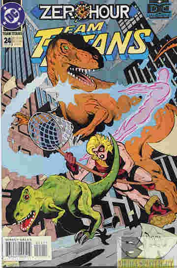 The big problem I had is that the writers seem to be working hard to put all these character into the story and have different groups doing something. And there’s way too many members of this team for that. You have Aqualad, the second not-evil Terra, the Human Mystery, Bird Of Prey (no connection to the all-girls team years later), Bumblebee, the Herald, Metallik (which made of three people in armor fusing into what’s usually a giant robot…I think, Hero X, Battalion, Enforcer, Prester Jon, Lapidus, Killowat, Mirage, Hellebore, Dagon, Flamebird, Murder Master (nice name for a hero)Wonder Boy, Shockadelica (whom never shows up on panel as far as I can tell), and someone named Green who looks like a living Green Lantern construct. And from what I read about this team, most of them as well as this team-up will disappear at the end of Zero Hour, part of the villains’ plans. In other words, this comic is too full of characters and eventually meaningless.