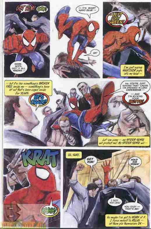 In the days when superpowers were still new in the Marvel Universe, thugs overpower Spider-Man. (from Amazing Fantasy #16)
