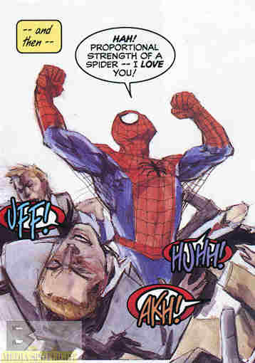 Spidey punches his way out of a dogpile of thugs. (from Amazing Fantasy #16)