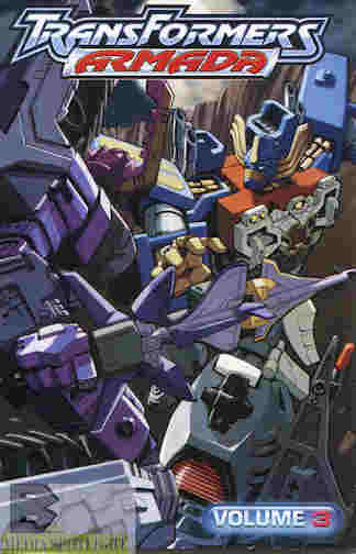 It seems like each consecutive mini-comic only slightly improved from the last. By not having to fit three of the same sentence in different languages the dialog improved thanks to having more space on the panel. And that’s all you get. The action ends quick, and could have benefited from another page or two to demonstrate what the Star Saber, Dark or otherwise, can actually do. Also, despite my earlier defense, having a line of dialog like “It’s Megatron!” “I go by Galvatron now!” wouldn’t have hurt. Saraccini is still having trouble writing a thrilling adventure in the few pages he’s allowed. It doesn’t help that half the book is a flip book catalog of other Armada toys then currently available. Overall unless you’re into the novelty it’s not one you really need to track down since I’m not even sure these are canon to the Dreamwave comics or the anime.