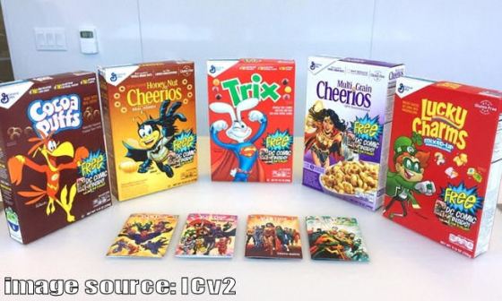 In the latest team-up between General Mills and DC Comics, some of their mascots are dressing up as superheroes. Due to a lack of female mascots for cereal, Wonder Woman gets to appear as herself. There are also mini-comics coming out that I would love to review for Free Comic Inside. You know, for those of you who actually eat these cereals and run into a few extras or would be willing to scan them for me. I’d very much appreciate it. The only promo Rice Chex ever did was the Chex Quest game, and that was still under Ralston Purina, and for some reason Cheerios is being left out again despite being one of their biggies. Oh, but Honey Nut and Multigrain get comics, the jerks!