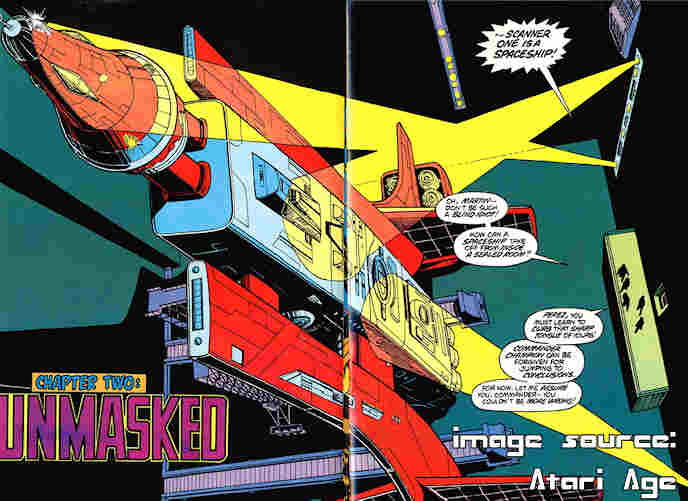 No time to explain anything else though, because everyone runs to their stations without prep time or even fighting over who gets what bedroom and set up personal effects. (Clothing’s easy when you’re part of a corporate military but wouldn’t you want a picture of your kids or your cat or something?) Scanner One fades from reality and into the multiverse. What video game…I mean planet will they journey to first? Well, either pick up Star Raiders for the Atari 2600 or wait for our next trip into Atari Force!