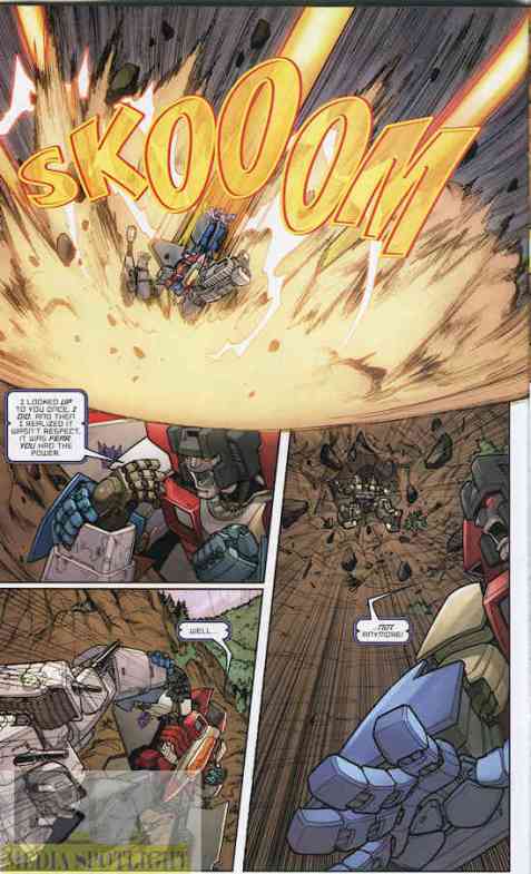 Starscream smashes into Megatron. (from Transformers: Infiltration #6)