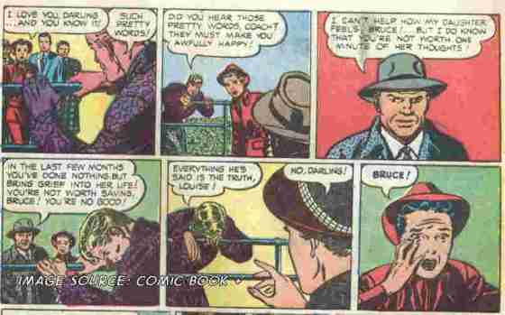 So the coach goes to his old friend Rex Morgan, because we need to keep him here somehow. He’s hoping Rex can…I’m not sure. Talk her out of it? Find out if they are dating? Anyway, during the date Bruce goes into withdrawal again, Manny later saying that he can’t go six hours without a hit anymore. He gets some money from Louise and scores a hit. We later learn she suspected Bruce may be on drugs (I think this was a huge red flag) but tries not to think about it. Manny also suggests Bruce should do a few “special chores” for some friends of his. I know what you’re thinking and I’m pretty sure it’s more drug delivery than that. Let’s not give Wertham any more fuel for the fire, okay?