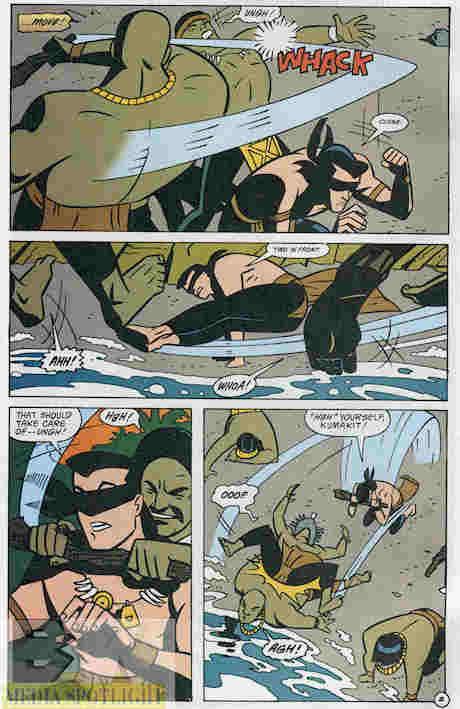 Dick is continuing to train with his latest master. This is his final lesson. His focus has been on his stealth skills, something Robin didn’t do much of because that’s kind of hard in a red-and-yellow costume. His current teacher is worried that he isn’t prepared for when stealth fails. And it comes to this.