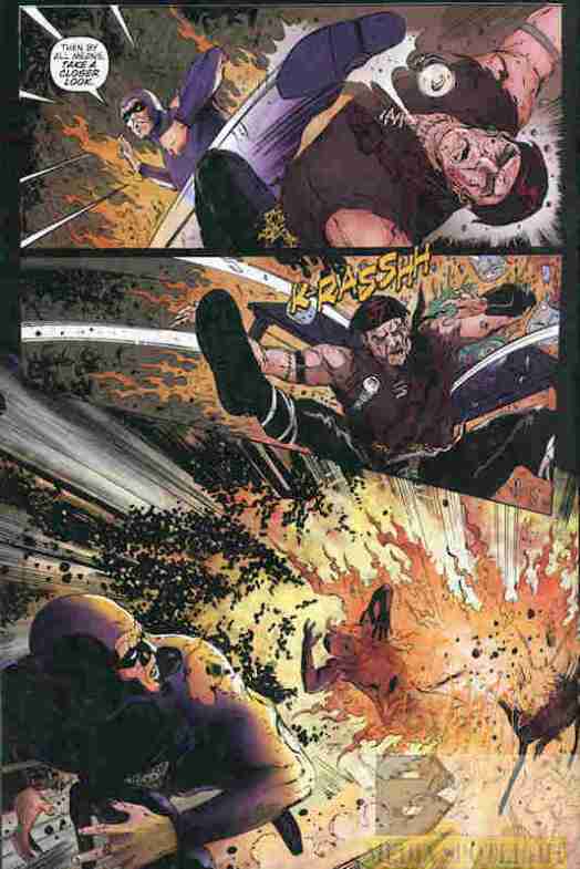 The Phantom kicks the bad guy into his own dangerous chemicals. (from The Phantom #13)
