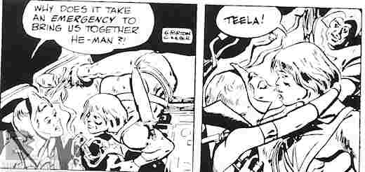 Also for some reason Weber really wants to add romance to this franchise, and add it hard. Evil-Lyn tricking Gwildor is one thing, but Teela starts making passes at He-Man. On the original show she once noted that she wanted a man with Adam’s smarts (or compassion or something like that, I last saw the episode a few months ago) and He-Man’s courage, but here she’s all into He-Man, even stealing a kiss at one point, rattling her father a bit…AND THE SHIP THEY WERE ON WAS ON IT’S WAY TO CRASHING! Seriously, Teela, time and place! I don’t mind that Teela is showing some interest in He-Man but this is out of nowhere, taking some vague hints by certain writers and going full-bore. We also get a reminder of Verona from the previous storyline that feels like Weber was just forcing in a reference to the last story, which back then if you didn’t see you had no idea who Verona was, and with no compilation or internet you were never going to know. I’ll all for continuity but it has to be done right.