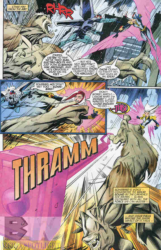 Songbird and MACH-1 come across a monster rampaging through New York. Why is he there? Darned if I know.
