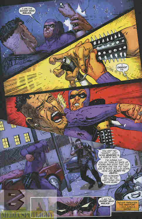 The Phantom battles the gang banger on the street outside the hospital. (from The Phantom #15 (Moonstone))