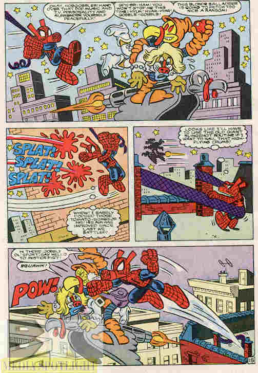 What I got was an anthropomorphic Marvel Universe featuring a less obnoxious Spider-Ham than main Marvel readers have been exposed to. His opponent? The Hobgobbler, who has kidnapped music and variety show star Barbara Mandrill. Don’t worry, that’s all the crazy we’ve got today. My brain is rather tired.