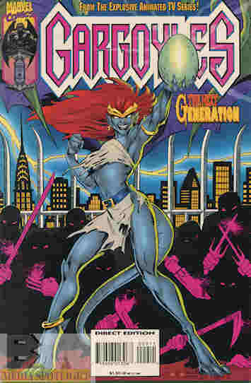 So that group that Demona was hanging out with last issue are part of a Triad group that also happens to be a cult who see Demona as a prophesied “winged one” that will aid in birthing a gargoyle egg. Elisa and Goliath become aware when an overzealous member got one of his people arrested, which he is punished for. As an assassin tries to silence the other guy Goliath comes to the rescue, which convinces the perp to start talking. Meanwhile the assassin tries to not hurt Goliath (as another winged one) but still commits suicide to keep from being caught. Learning what Demona’s plan is they still have to wait to find out where it is, unaware that the ceremony is for hatching the egg. The Gargoyles interfere in the spell and rescue hostages. The leader of the Triad escapes with the egg, and Demona also escapes, everyone else believing the egg was destroyed.
