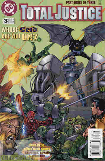 Kyle returns, the fractal armor substituting for his power ring. He makes contact with Batman as the two compare notes. Batman confronts Mike and learns Darkseid was using an old military installation to look into mystic orbs that he hoped would find him the anti-life equation. Now he’s returned to reclaim his forces but Mike, having learned Earth culture from his temporary kidnap victims, tells Batman everything and wants to stay around with his wife and kids. (We won’t go into how a Parademon has a wife and kids mostly because I don’t want to even think about it.) Robin barely escapes Darkseid while Green Lantern reaches Flash and Aquaman, breaking them from their illusions in time to battle and defeat the parademons. The orbs are collected the prisoners freed, leading to a reunion between Tim and his father, while Batman allows Mike and his family to remain hidden on the island with TV and usenet (anyone else remember usenet and newsgroups?).
