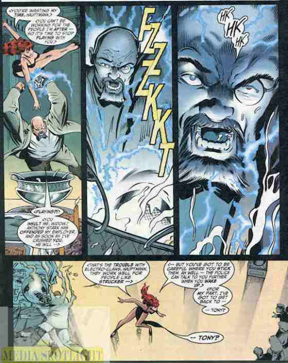 Natasha Romanoff started out as a villain in the Marvel universe. While movie fans only know her as a SHIELD agent she was actually a Russian spy who tricked and manipulated Hawkeye into becoming a villain before they both reformed. When it comes to kicking butt, taking names, and making sure nobody knows those names, the Black Widow is the agent you call upon. And when SHIELD sends her to find out who has been kidnapping electronics experts she went to microelectronics genius Tony Stark for help…by having him be kidnapped.
