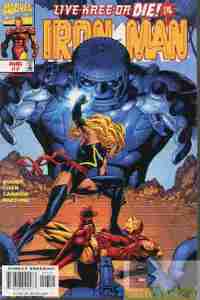A faction of the Kree retaking their old base on Earth’s moon had reformed the Kree Supreme Intelligence, calling themselves the Lunatic Legion. They have working on their revenge, which happens to include a company Tony was hoping to find information regarding whomever’s been trying to kill him lately. That meeting is first interrupted by Warbird (the name Carol Danvers was using at the time), whom Tony tried to reach out to since he’s worried her recent travesties have driven her to drinking, and then by the Kree group, believing they’ve been discovered and having plans for Warbird…plus wanting revenge on Iron Man and the others who destroyed the last Supreme Intelligence after it tried to wipe out the Kree race (the Lunatics don’t believe that). Carol chases after the Kree, leaving Iron Man to deal with a giant Sentry robot (no connection to the hero introduced later) and to save the people in the building. Tony’s friend agrees to let him go through her records, having seen her business destroyed and Tony worried she’s not the only one letting a bad decision lead to her doom. [continued in Captain America v3 #8]
