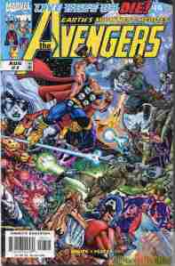 The Kree Supreme Intelligence tried to jumpstart his race’s evolution so having the Lunatic Legion try to turn Earthlings into the same current run on the ladder doesn’t sit well with him. He gets an “anonymous tip” out to the Avengers just as they hold a hearing to determine Warbird’s future as an Avenger. When things don’t seem to be in her favor and she isn’t allowed to join the return mission she quits. Later she tries to get to the moon on her own power but fails. Meanwhile the Avengers (Thor, Captain America, Iron Man, Hawkeye, and Scarlet Witch–who summons Wonder Man’s energy spirit with a damaged Vision unable to attend, are joined by Quicksilver, Justice, and Firestar) head to the Lunatic Legion base as the Lunatics turn themselves into energy to power the mutation device. Together the group manages to stop the machine and save the Earth, SHIELD now able to study the blue area and the Supreme Intelligence, just as he’ll be studying them. Back on Earth, Carol sits at a bar, wondering if she should take that drink in her hand.