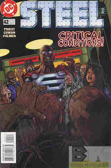 At one point John wonders if he’s the only sane one in this city. I think he’s at least the only one with any morals. The guy at the check-in desk is a jerk. Amanda’s a jerk. Some of the patients are jerks. Nat and Paul are jerks. Basically everyone is either a jerk or evil except for the suddenly snarky John Irons, who only seems to be doing superhero stuff just to remind us this is allegedly about a superhero. I’ll be honest with you folks: I hate this comic. I expected to be picking up a superhero series and ended up with this soap opera that wouldn’t be out-of-place in a Milestone comic, but that’s why I didn’t get into Milestone comics. But it’s also one more thing: boring! There’s four pages and a panel of superhero stuff, using the amount of comic space I expect out of a minicomic (but that’s the 90s for you), and the rest is love triangles and horrible people. The racist cop bit comes out of nowhere and adds nothing to the story, like most of the commentary I’ve seen in this comic since Priest took over and 90s’s me jumped on for expecting the superhero comic I saw in the random issues I had picked up before this. I cannot in good conscience recommend this issue at all, even with the Skorpio and Paul revelations. This issue represents everything I don’t like about this comic and only a minute of what I had collected this comic to see. I’m pretty sure I dropped it in a few issues from now.
