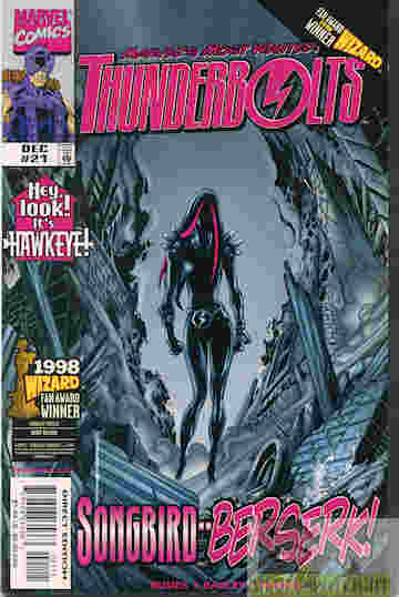 Hawkeye earns a few minutes to talk by holding his own against the Thunderbolts. He’s offering to take over the team and help clear their name, which he claims is sanctioned by the The Commission On Superhuman Activities. (In truth they hate the idea and warn him that if he tries they’ll consider him a villain as well.) Songbird is the only one who questions the plan (granted, Moonstone is only going along with it because she thinks Hawkeye is stupid, and probably thinks she can manipulate him) and storms off. MACH-1 goes after her, telling Hawkeye that he’s going to have to trust they won’t run off as much as they have to trust him to clear them. Songbird and MACH-1 reconcile while Hawkeye comes up with a plan to get them away from the National Guard. The Thunderbolts all agree to his terms, but first he adds one more: the Beetle once murdered a man and MACH-1 (the same guy with a new name) must serve his time for it, Hawkeye believing it’s the only crime that won’t be forgiven easily.